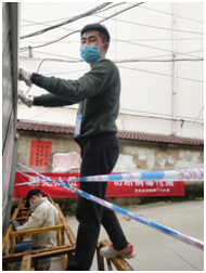 周翔,1990年出生,铜鼓县棋坪镇人,2007年参军入伍,服役于武警江西省总队,2019年12月1号转业,服役期间多次获得部队嘉奖,2018年因工作表现突出,荣立个人三等功。作为一名刚退役回来的退役军人,专业回家后,看到铜鼓县疫情较为严峻,身为党员的他主动请愿上一线,向铜鼓县退役军人事务局郑重地写下请战书。